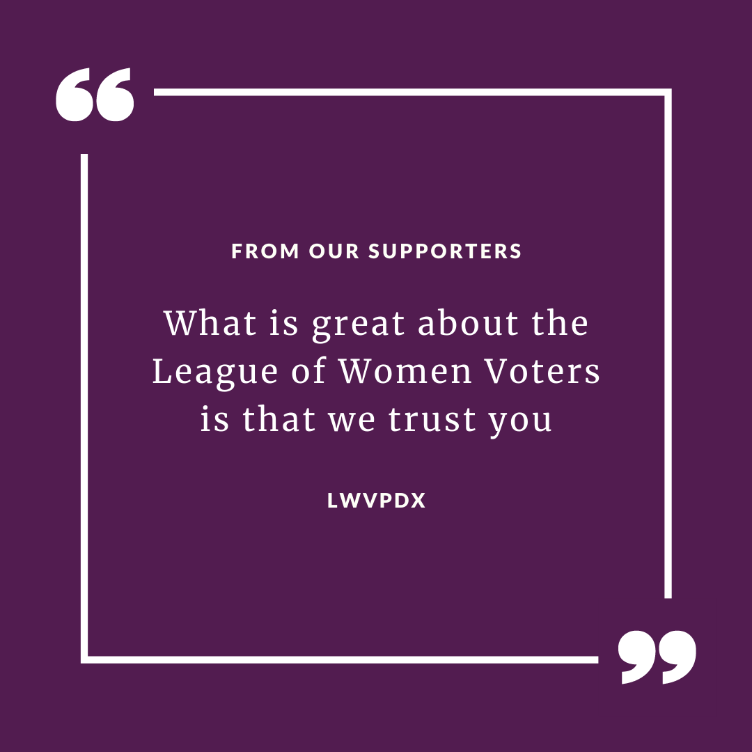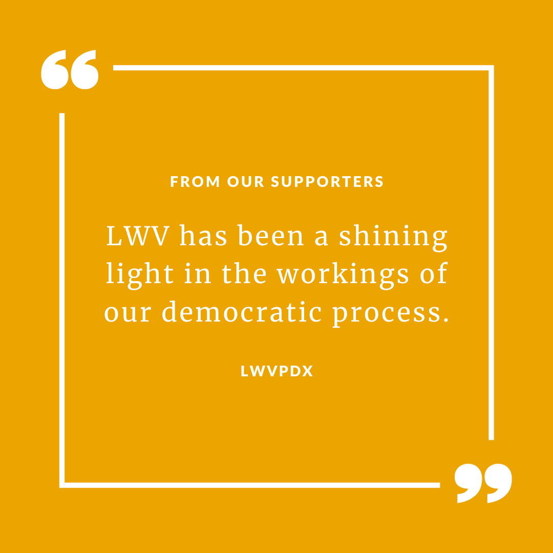 With your support, LWVPDX will continue to be strong into the future, shaping a world where people’s votes and voices matter.