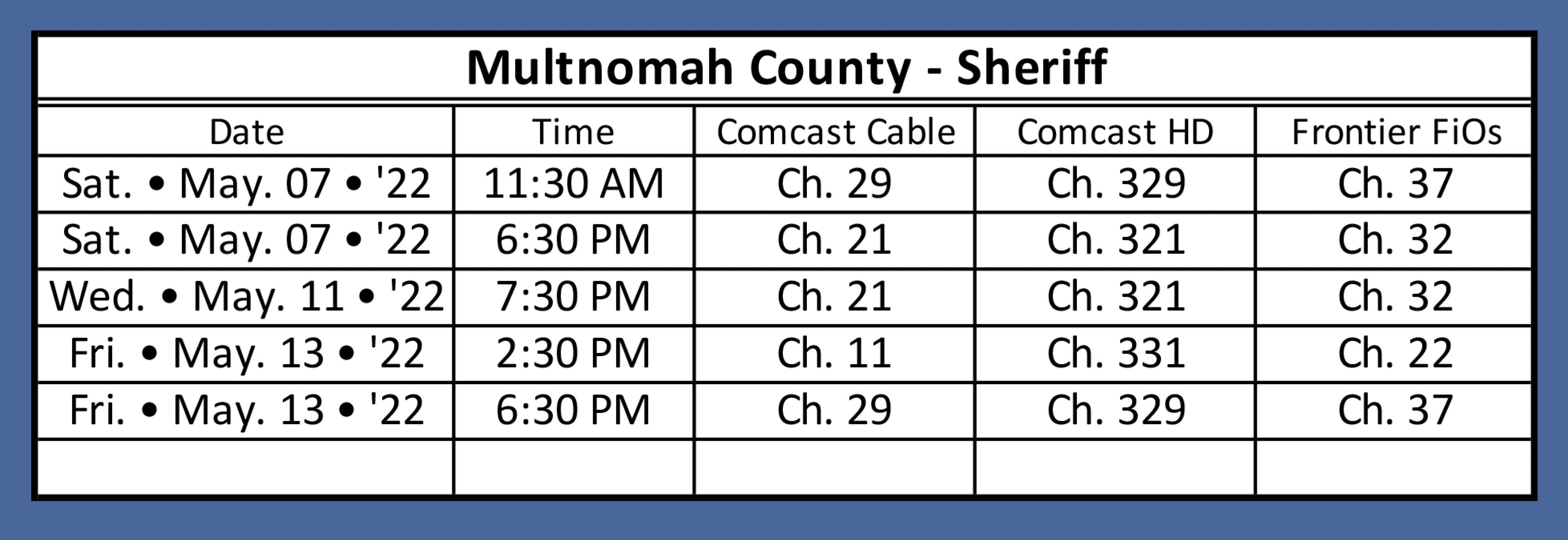 - Video Forum for candidates for Multnomah County Sheriff. Derrick Peterson and Nicole Morrisey O’Donnell