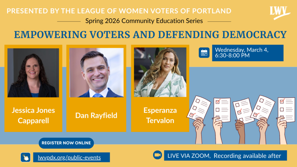 You can view a playlist of all the recorded videos at the League of Women Voters of Portland Civic Education panel playlist.